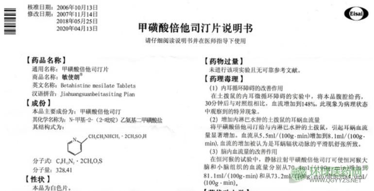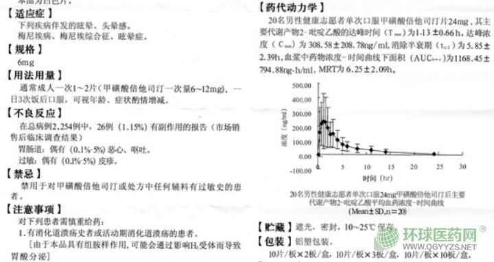 敏使朗(甲磺酸倍他司汀片)說明書圖片版