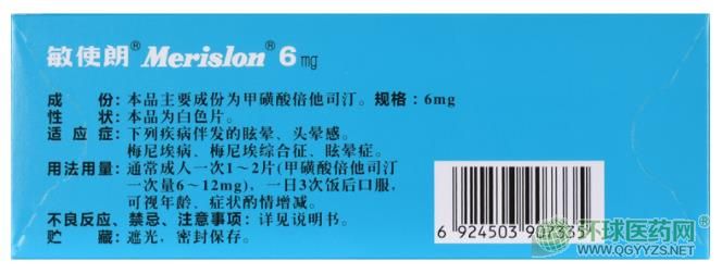 敏使朗(甲磺酸倍他司汀片)外包裝