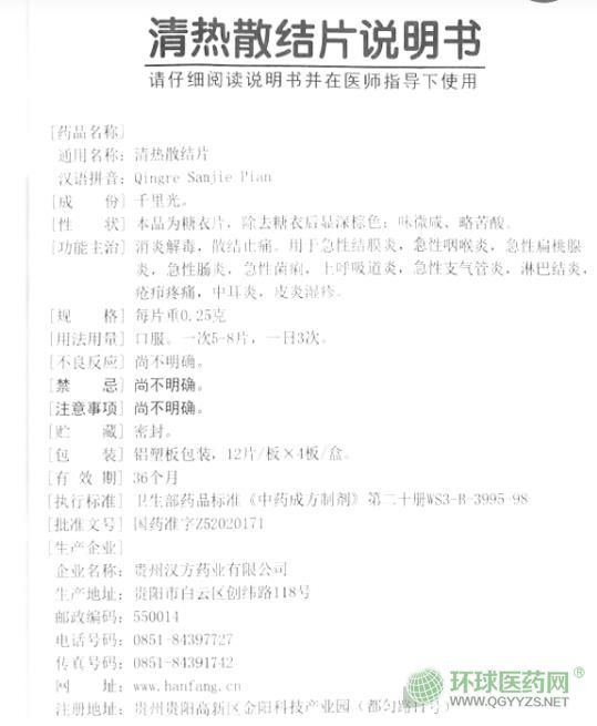 貴州漢方清熱散結(jié)片說明書圖片版