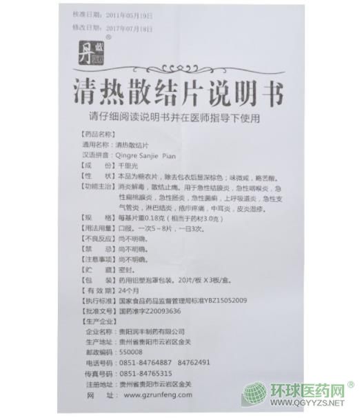 貴陽潤豐制藥丹藍清熱散結(jié)片說明書圖片版