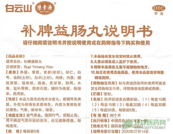 通用名稱:補(bǔ)脾益腸丸