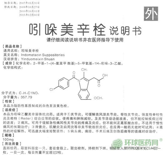 湖北東信靜青吲哚美辛栓說明書文字版