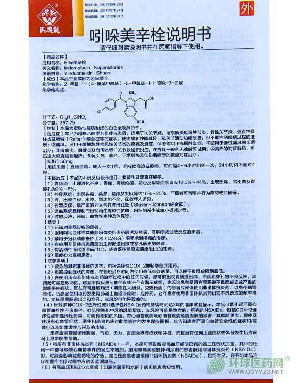 馬應(yīng)龍吲哚美辛栓說明書圖片版