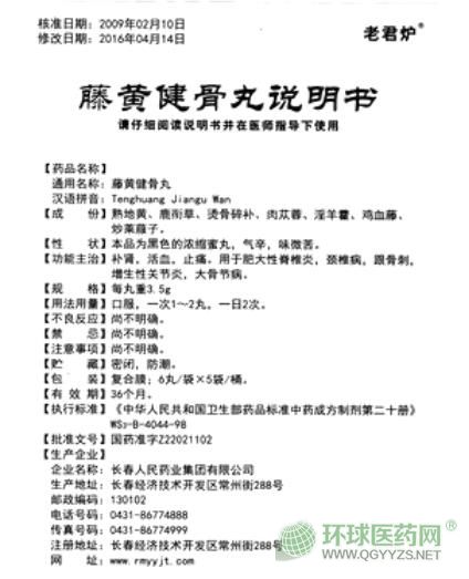 老君爐(長春人民藥業(yè))藤黃健骨丸說明書圖片版