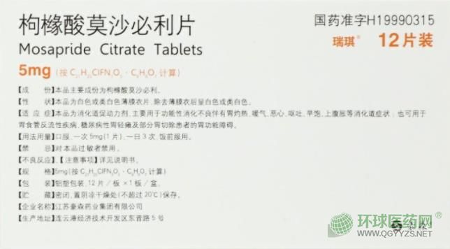 江蘇豪森瑞琪枸櫞酸莫沙必利片說明書文字版