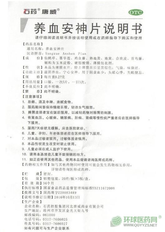 石藥唐威養(yǎng)血安神片說(shuō)明書(shū)圖片版