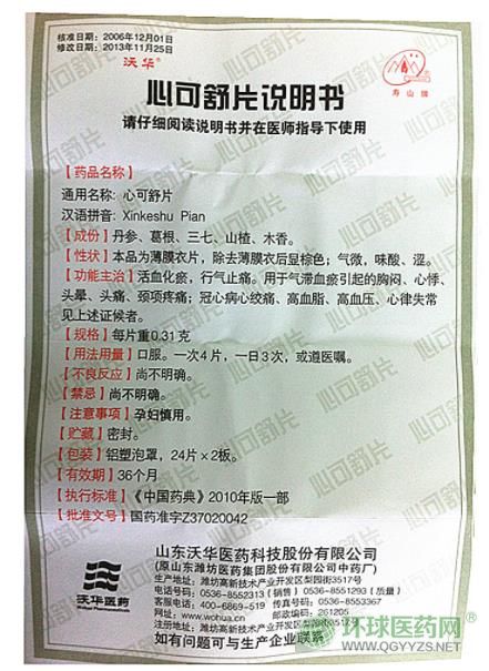 山東沃華心可舒片說(shuō)明書(shū)圖片版