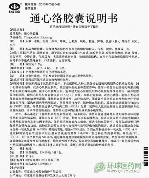 以嶺藥業(yè)通心絡(luò)膠囊說明書圖片版