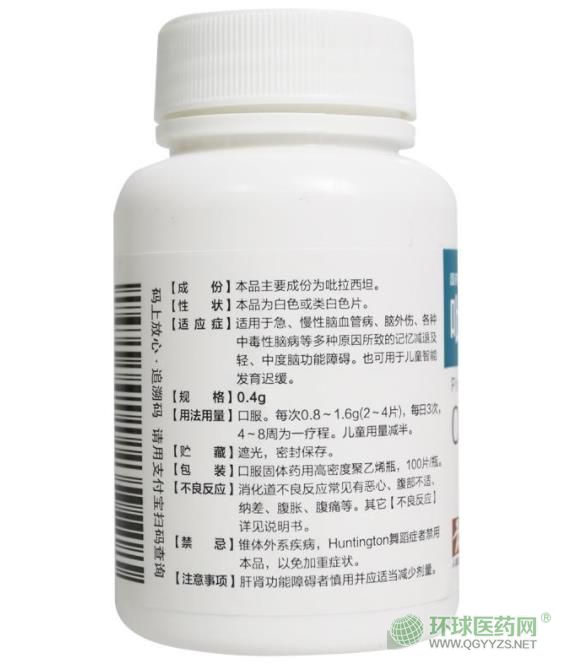 【藥理作用】本品為腦代謝改善藥,屬于g-氨基丁酸的環(huán)形衍生物。有抗物理因素、化學(xué)因素所致的腦功能損傷似的作用。能促進(jìn)腦內(nèi)ATP,可促進(jìn)乙酰膽堿合成并正增強(qiáng)神經(jīng)興奮的傳導(dǎo),具有促進(jìn)腦內(nèi)代謝作用?梢詫(duì)抗由物理因素、化學(xué)因素所致的腦功能損傷。對(duì)缺氧所致的逆行性健忘有改進(jìn)作用。可以增強(qiáng)記憶,提高學(xué)習(xí)能力。動(dòng)物實(shí)驗(yàn)的急性毒理試驗(yàn)表明,小鼠灌胃劑量大于10g/kg,未見(jiàn)死亡。靜脈給藥的半數(shù)致死量LD50為9.2g/kg。亞急性和慢性毒理實(shí)驗(yàn)均未發(fā)現(xiàn)對(duì)大鼠、狗的生長(zhǎng)發(fā)育有任何不良影響。對(duì)血液、心、肝、腎、腦等重要內(nèi)臟器官和功能均無(wú)影響。