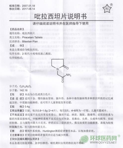 東北制藥吡拉西坦片說明書文字版
