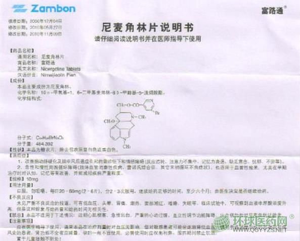 富路通尼麥角林片說明書圖片版