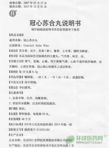 北京同仁堂冠心蘇合丸生產(chǎn)廠家簡介