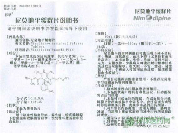四環(huán)抒孚尼莫地平緩釋片說明書圖片版