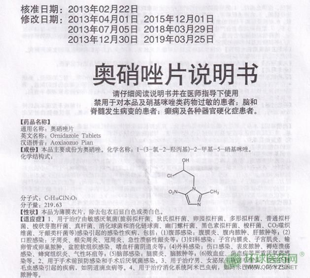 山東魯抗(奇舟)奧硝唑片說(shuō)明書圖片版