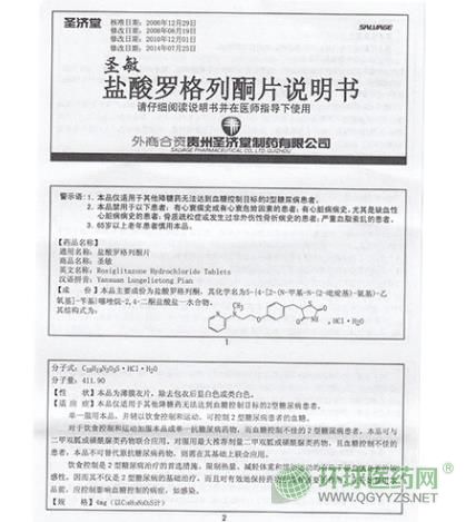 圣濟(jì)堂圣敏羅格列酮片說明書圖片版