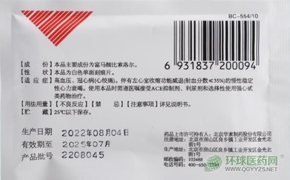 博蘇富馬酸比索洛爾片外包裝