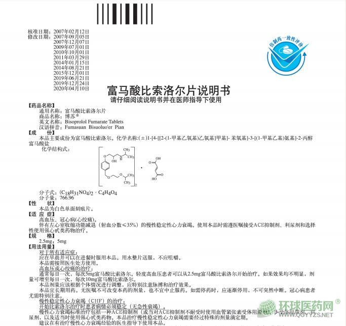 博蘇富馬酸比索洛爾片說明書圖片版