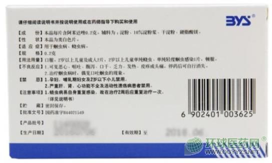 【適應(yīng)癥】用于蛔蟲病、蟯蟲病。