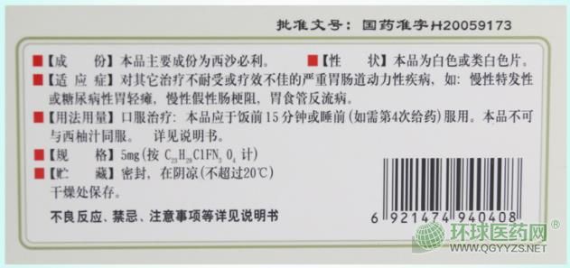 【適 應 癥】對其它治療不耐受或療效不佳的嚴重胃腸道動力性疾病,如:慢性特發(fā)性或糖尿病性胃輕癱、慢性假性腸梗阻、胃食管反流病。