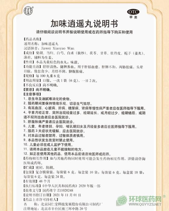 北京同仁堂加味逍遙丸說(shuō)明書圖片版