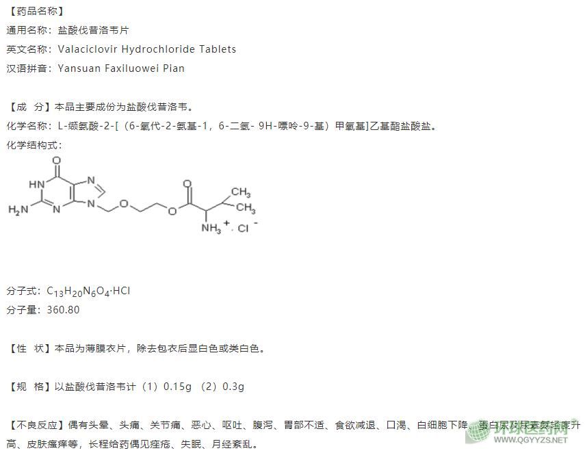 山東羅欣鹽酸伐昔洛韋片(羅乃韋)說明書文字版