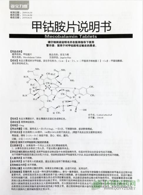 亞寶藥業(yè)甲鈷胺片說(shuō)明書(shū)圖片版