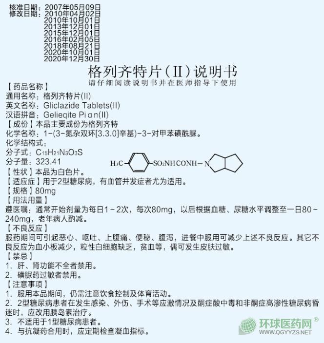 商品名稱: 雙鶴藥業(yè) 格列齊特片(Ⅱ) 80mg*20片*3板/盒