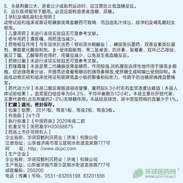 本品是第二代磺脲類降血糖藥,作用較強(qiáng),其機(jī)理是選擇性地作用于胰島β細(xì)胞,促進(jìn)胰島素分泌,并提高進(jìn)食葡萄糖后的胰島素釋放,使肝糖生成和輸出受到抑制。本品經(jīng)動物實(shí)驗(yàn)和臨床使用證明能降低血小板的聚集和粘附力,有助于防治糖尿病微血管病變