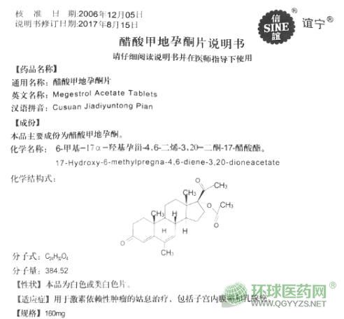 信誼醋酸甲地孕酮片說明書文字版
