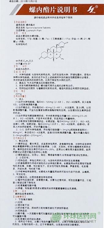 【藥品名稱】通用名稱:螺內(nèi)酯片