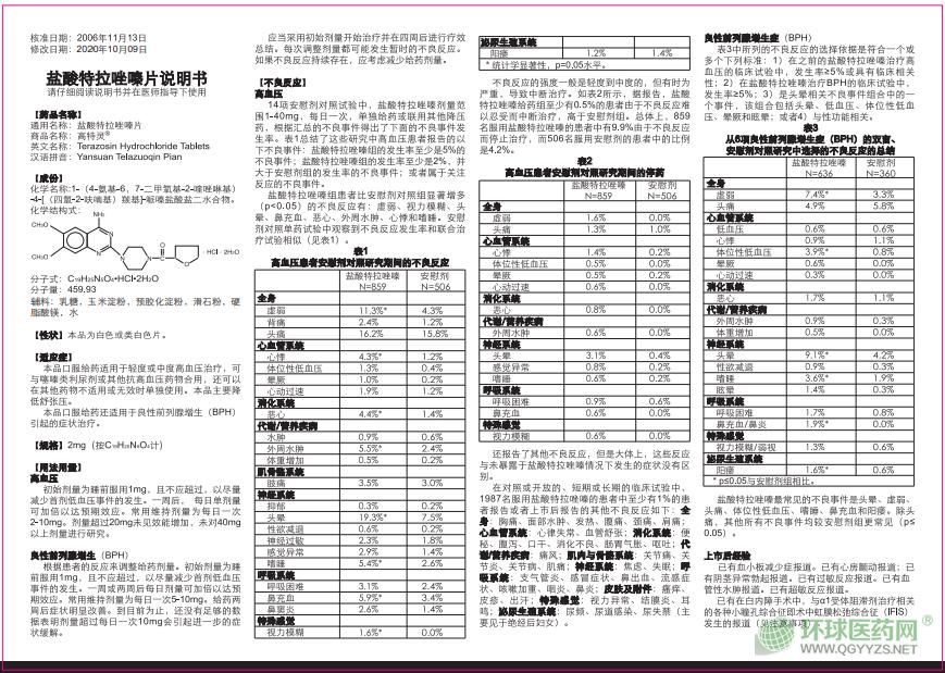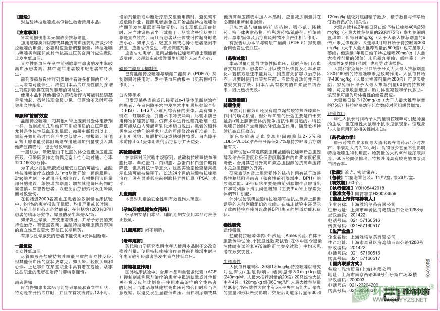 高特靈鹽酸特拉唑嗪片說(shuō)明書圖片版