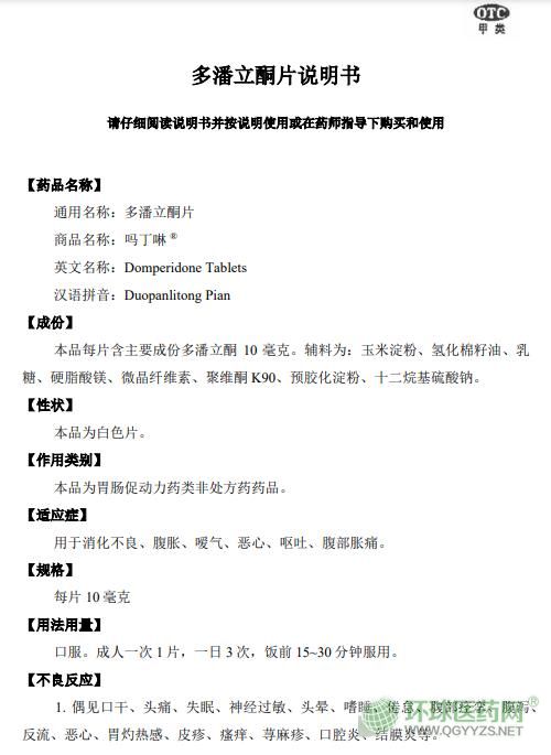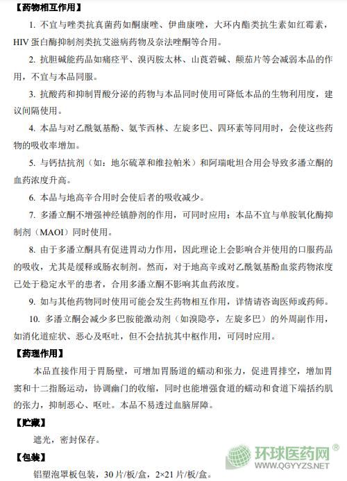 楊森嗎丁啉多潘立酮片說明書圖片版