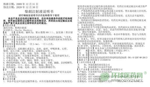 【成 份】北柴胡。輔料為:聚山梨酯80(供注射用)、氯化鈉(供注射用)、注射用水。