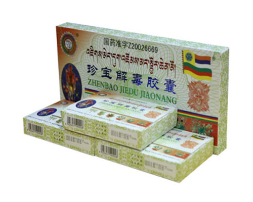 珍寶解毒膠囊,中成藥名。由鐵灰、 珊瑚、牛黃、西紅花、紫檀香、 巖精膏、余甘子等59味藥組成。本品為膠囊劑,內(nèi)容物為淡黃綠色的粉末;氣清香,味苦、辛、澀。