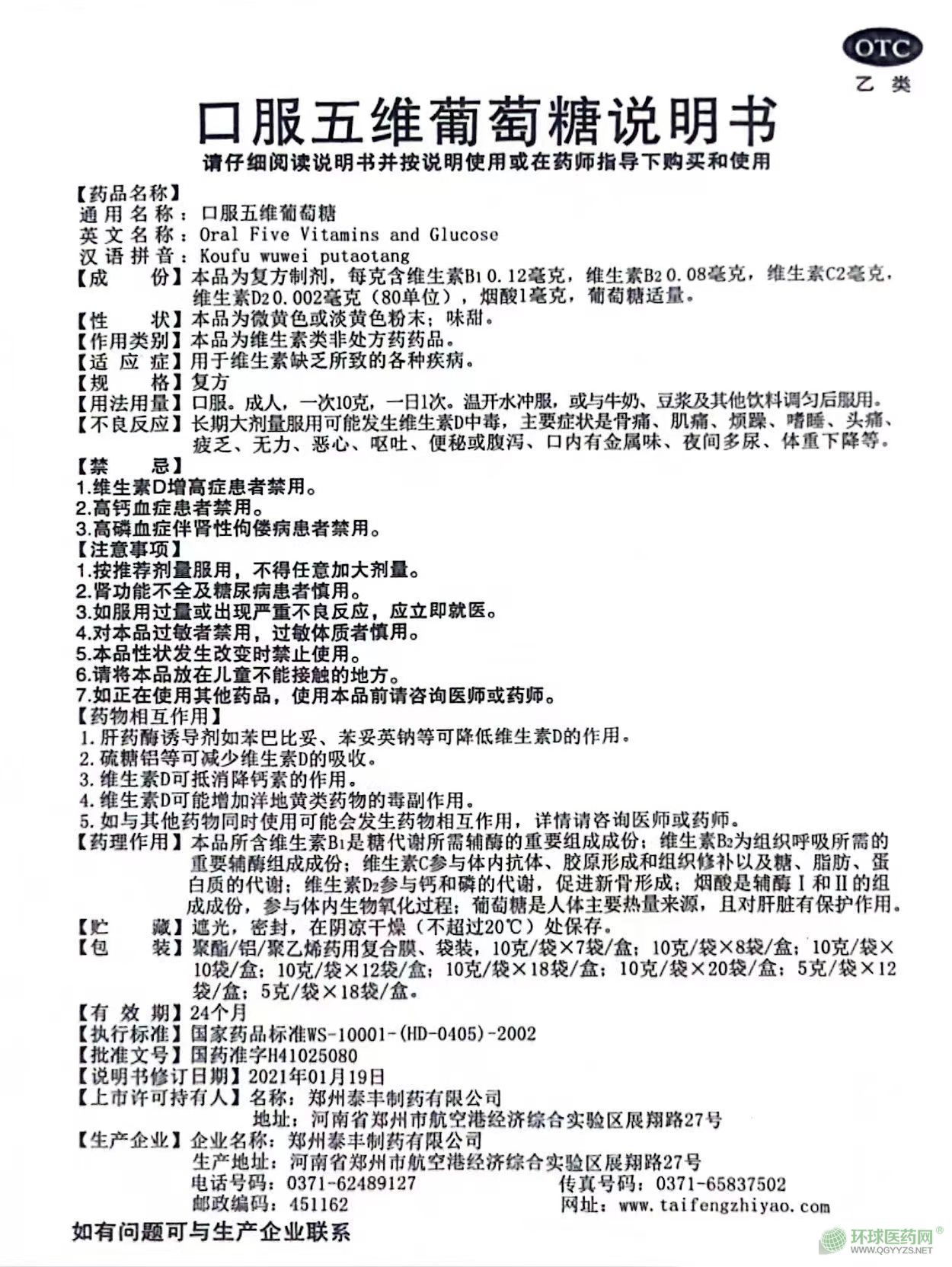 天晟泰豐口服五維葡萄糖說明書文字版見下圖