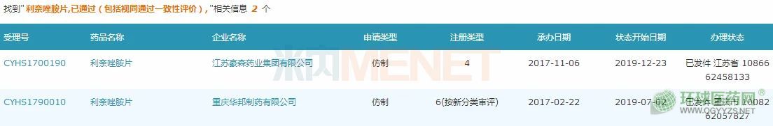 目前國內(nèi)市場有7家國內(nèi)藥企及1家跨國企業(yè)擁有利奈唑胺葡萄糖注射液生產(chǎn)批文,正大天晴、正大豐海、豪森藥業(yè)已提交該產(chǎn)品一致性評價(jià)補(bǔ)充申請,目前還處于“在審評審批中(在藥審中心)”狀態(tài)。