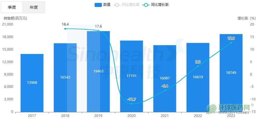 據(jù)中康開(kāi)思系統(tǒng)顯示,2023年口服降糖藥國(guó)內(nèi)等級(jí)醫(yī)院和零售市場(chǎng)銷(xiāo)售總額超308億元。其中,在國(guó)內(nèi)等級(jí)醫(yī)院銷(xiāo)售額達(dá)187億元,同比增長(zhǎng)12.8%。