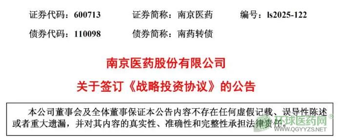 同日,南京醫(yī)藥董事會審議通過,同意簽訂此《戰(zhàn)略投資協(xié)議》。
