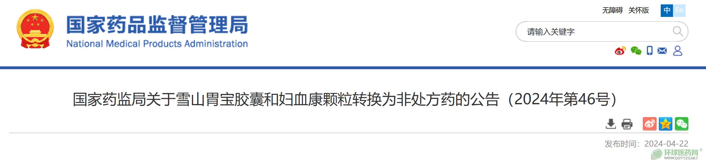 4月22日,國家藥監(jiān)局發(fā)布雪山胃寶膠囊和婦血康顆粒由處方藥轉(zhuǎn)換為非處方藥的公告。