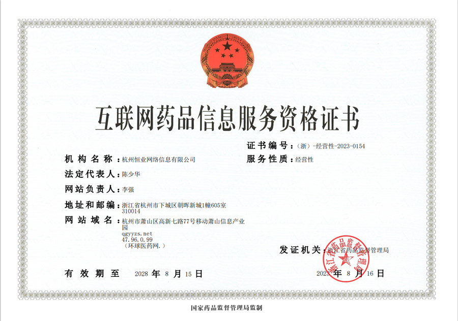 環(huán)球醫(yī)藥網(wǎng)-互聯(lián)網(wǎng)藥品信息服務(wù)資格證書
