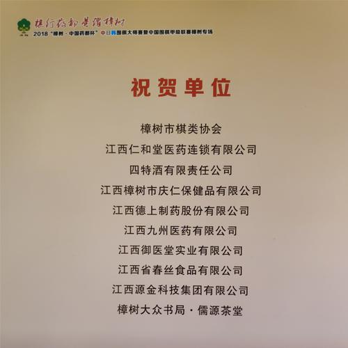 江西御醫(yī)堂實(shí)業(yè)有限公司熱烈祝賀2018年“樟樹(shù).中國(guó)藥都杯”中日韓圍棋大師賽圓滿(mǎn)閉幕。
