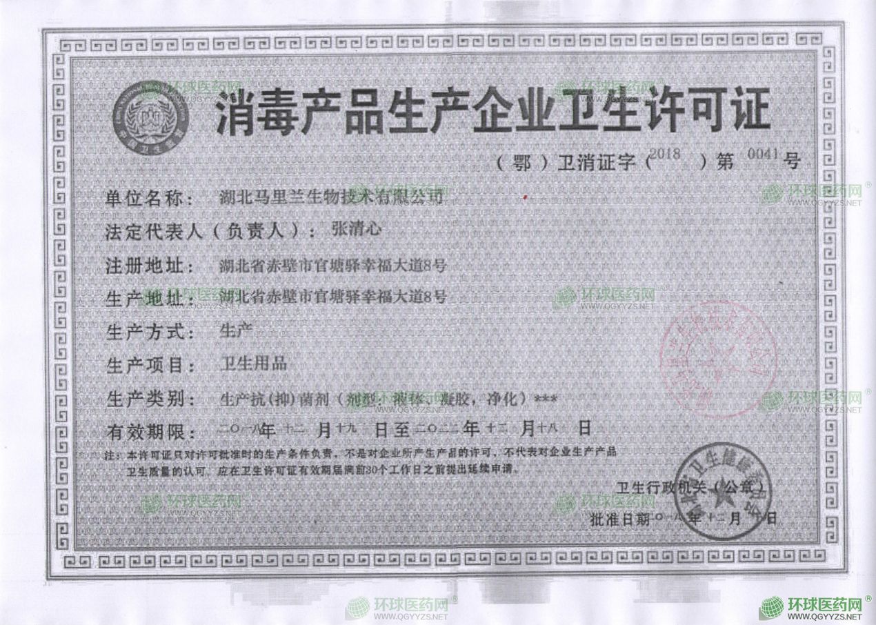 - 消毒產(chǎn)品生產(chǎn)企業(yè)衛(wèi)生許可證