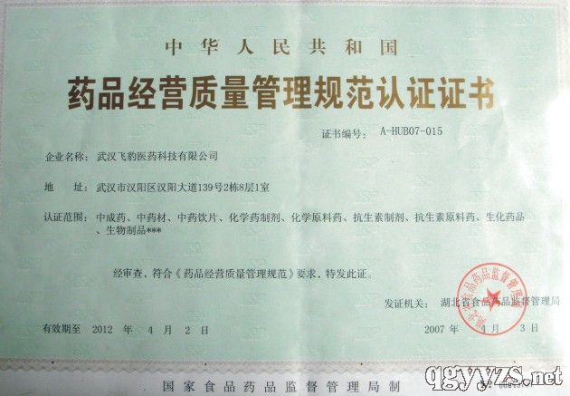 - 藥品經(jīng)營(yíng)質(zhì)量管理規(guī)范認(rèn)證證書(shū)