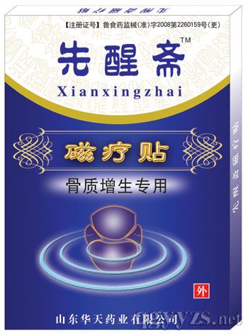 - 先醒齋磁療貼--骨質(zhì)增生專(zhuān)用 批準(zhǔn)文號(hào): 魯食藥監(jiān)械(準(zhǔn))字2008第226015規(guī) 格: 1貼/袋×3袋/盒×400箱/箱