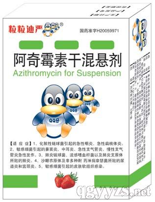 - QQ仔--阿奇霉素干混懸劑--鼻竇炎、咽炎、扁桃體 批準(zhǔn)文號(hào): 國(guó)藥準(zhǔn)字Z20059971規(guī) 格:
