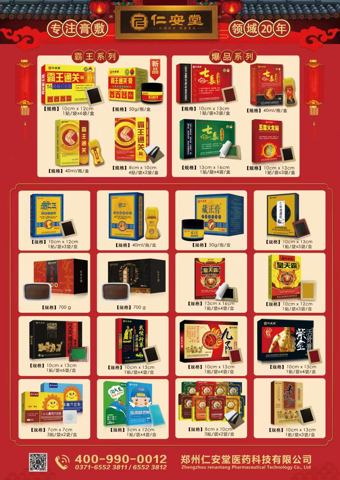 從2003年至今,仁安堂不忘初心,發(fā)展創(chuàng)新,成功打造“七毒活骨貼”、“霸王通關(guān)貼”、“五毒火龍貼”、“景家傳”、“低頭族”等風(fēng)濕骨病貼劑和配套產(chǎn)品!產(chǎn)品覆蓋全國各地,與上萬家藥品公司、連鎖藥店、醫(yī)院、診所建立了穩(wěn)定的業(yè)務(wù)關(guān)系。