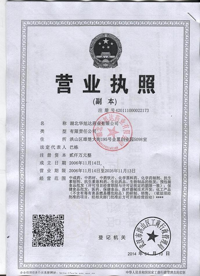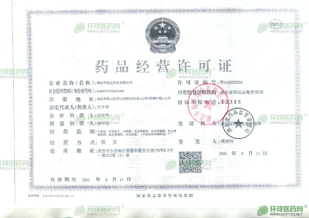 湖北華旭達(dá)藥業(yè)有限公司于2006年創(chuàng)立,主營(yíng)中成藥、化學(xué)藥、原料藥、消毒用品和醫(yī)療器械的批發(fā)銷(xiāo)售。公司位于武漢市洪山區(qū)書(shū)城路名士1號(hào)3棟17樓,辦公面積503㎡;藥品倉(cāng)庫(kù)位于東西湖區(qū)慈惠農(nóng)場(chǎng),面積1683.9㎡,符合GSP要求,于2020年8月通過(guò)省藥品監(jiān)督管理局換證驗(yàn)收。