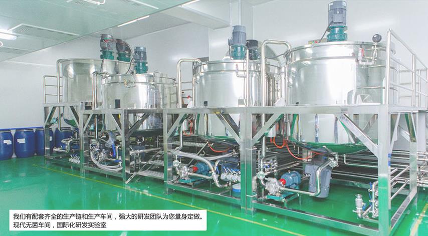 公司以“品質、客戶至上”的經營方略立足于市場。2011年公司投入巨資修建了具有國際標準水平的10萬級凈化生產車間,自動化流水線,全套無菌灌裝和真空均質乳化技術等,先進的制造設備和檢測儀器,配備了的科研、生產、銷售和管理人員,具備了生產國際化妝品的能力。(下圖為公司生產基地實景)