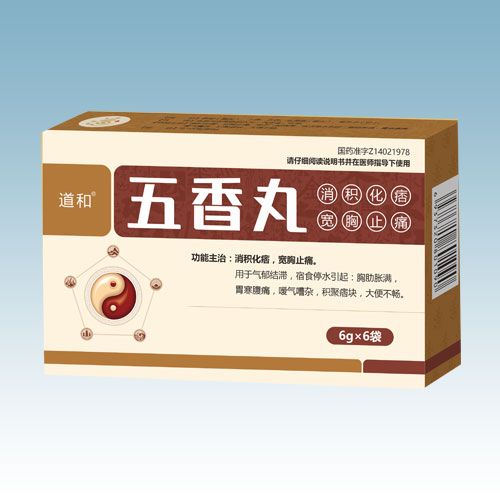 主要成分:香附(醋炙)、丁香、木香、五靈脂(醋炙)、牽牛子(炒)。