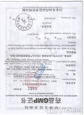 發(fā)證機(jī)關(guān): 湖北省藥品監(jiān)督管理局